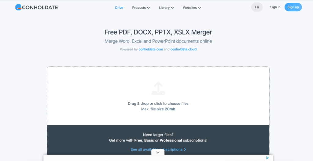 Conholdate is one of the online platforms to edit your word or other types of documents. Similar to Aspose, this tool is quite simple, and you can use it for free without being required to create an account. As a word editing tool, it provides an option to merge two or multiple documents into one document. These are the steps of how to combine word documents using Conholdate.